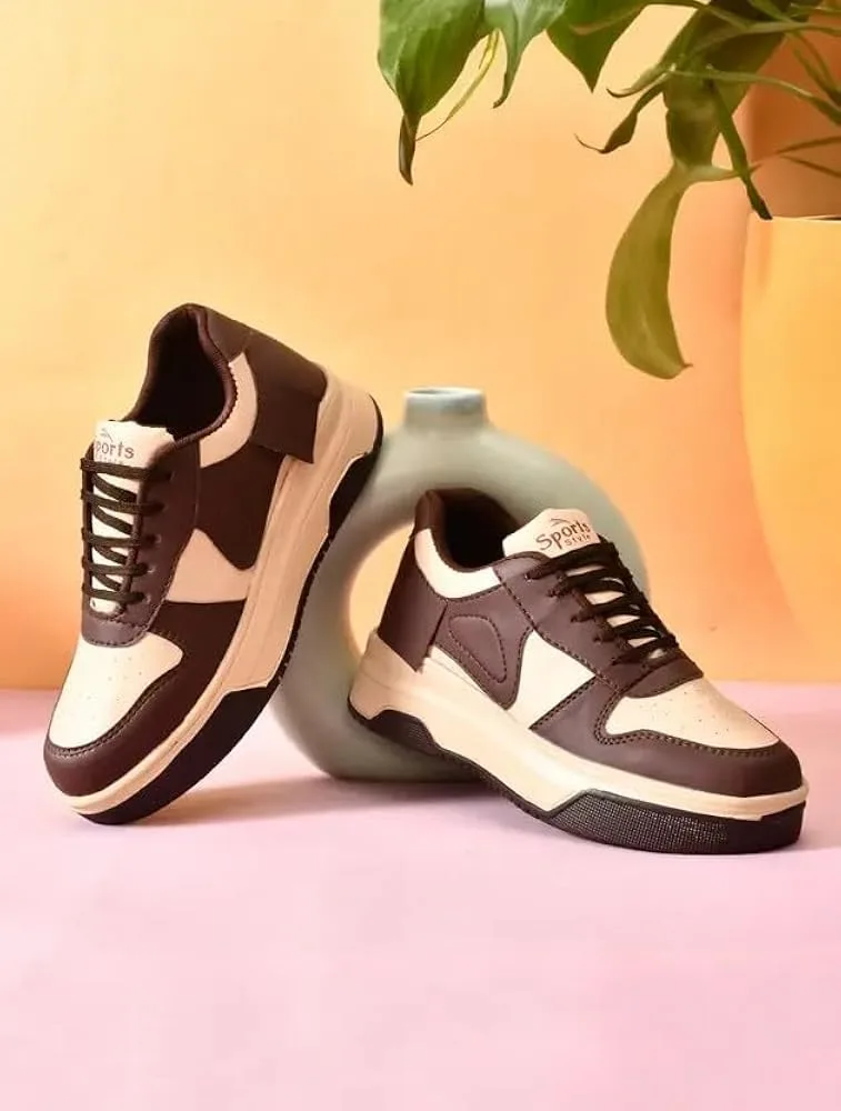 Brown & Beige Low-Top Casual Sneakers