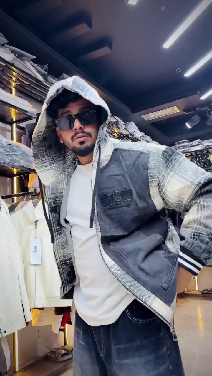 Upgrade your winter streetwear with this grey plaid and washed denim panel zip hoodie jacket, designed for a bold yet effortless casual look. The unique mix of plaid fabric and denim panels adds visual depth and a modern edge, making it a standout piece for everyday street style.
