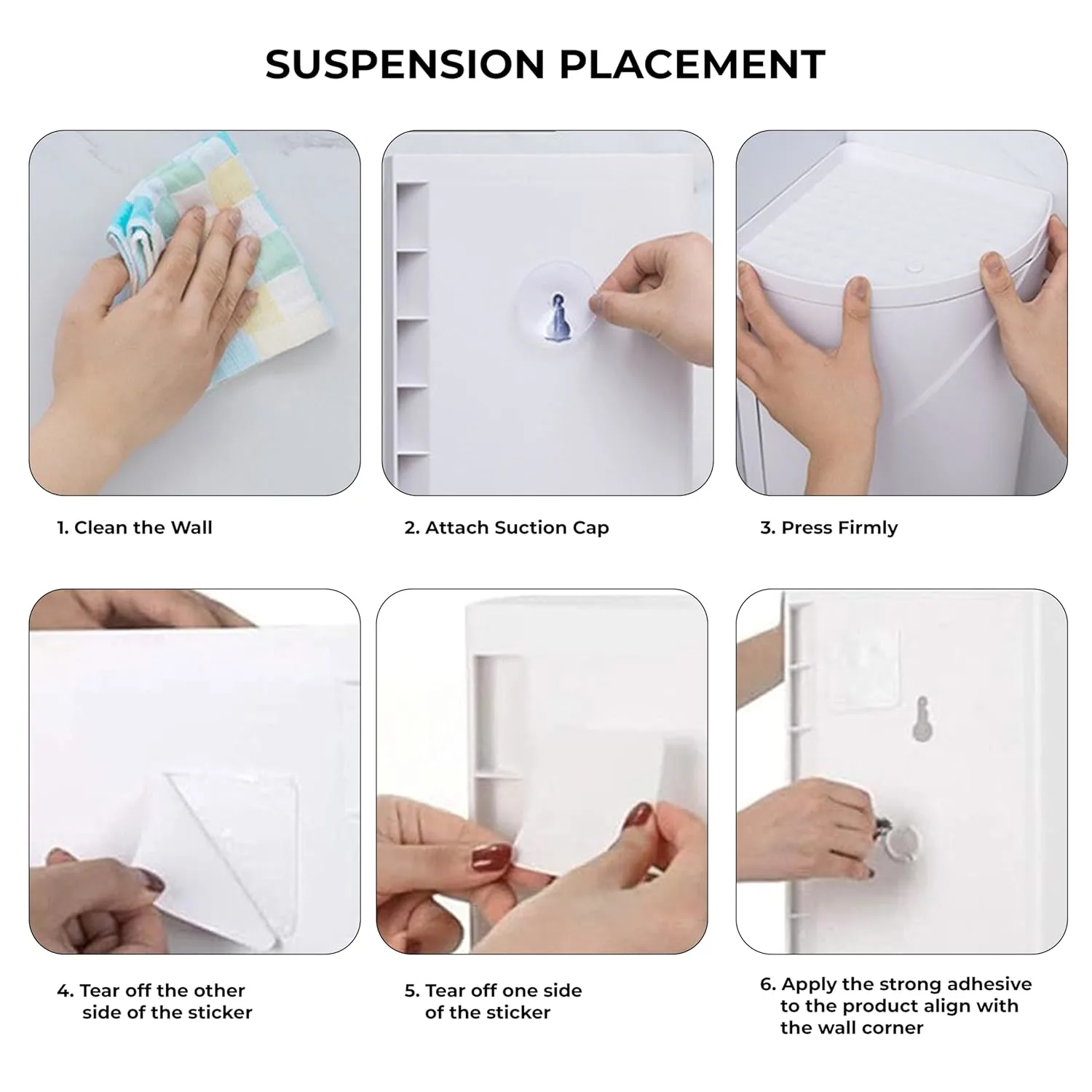 Plastic 360 Rotating Corner Shelves,3 Tier Storage Cabinet Towel Holder Rack, Corner Cabinets With Doors And Shelves For Bathroom Bathtub Toilet Table (White, Large)