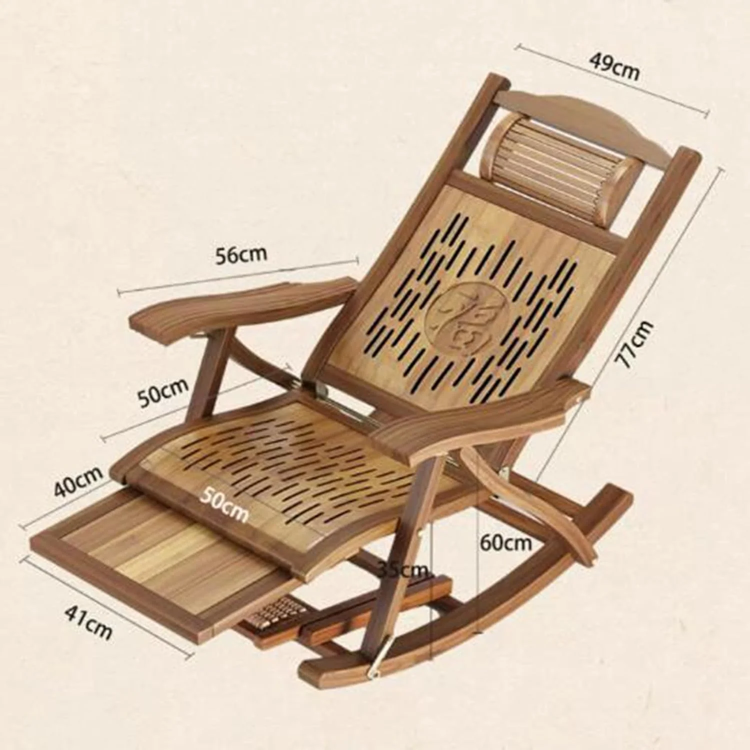 Material-The chaise longue is made of bamboo material, ensuring long-lasting durability and sturdiness. The backrest is hand-carved, the 168° angle can be adjusted in 5 levels, the seat plate is 49cm wide, and the cotton pad is removable;