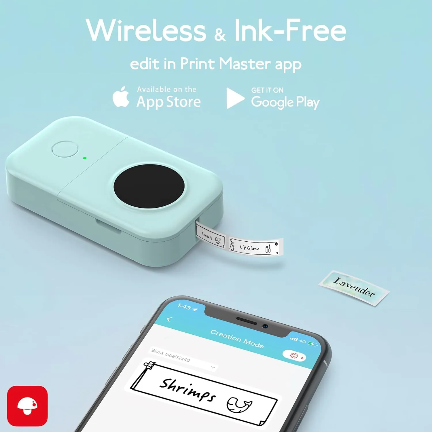 wireless label maker adopts 4.0 Bluetooth technology lets you edit labels directly from your smartphone. You can easily choose variety of fonts, various texts, symbols, and icons for your label.