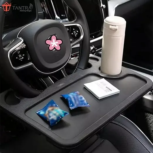 This car steering wheel mounted tray table is a smart and practical accessory designed to make your time inside the vehicle more comfortable and organized. It easily attaches to the steering wheel, transforming it into a stable mini table for eating, working, or placing daily essentials. The sleek and compact design blends well with modern car interiors without looking bulky.
