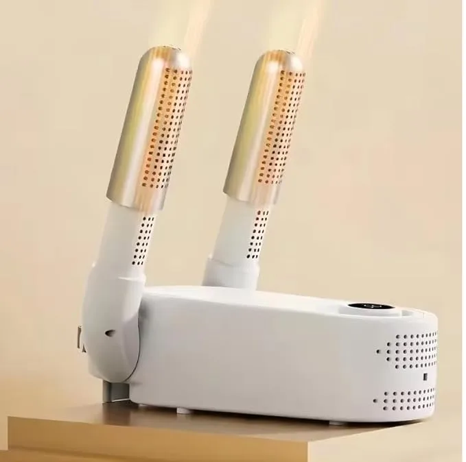 This electric shoe and boot dryer is designed to keep footwear dry, warm, and fresh in all seasons. Using a dual air tube system, it circulates warm air deep inside shoes, boots, socks, and gloves to remove moisture effectively. It is ideal for rainy days, winter use, or after workouts, helping footwear dry evenly without damage.