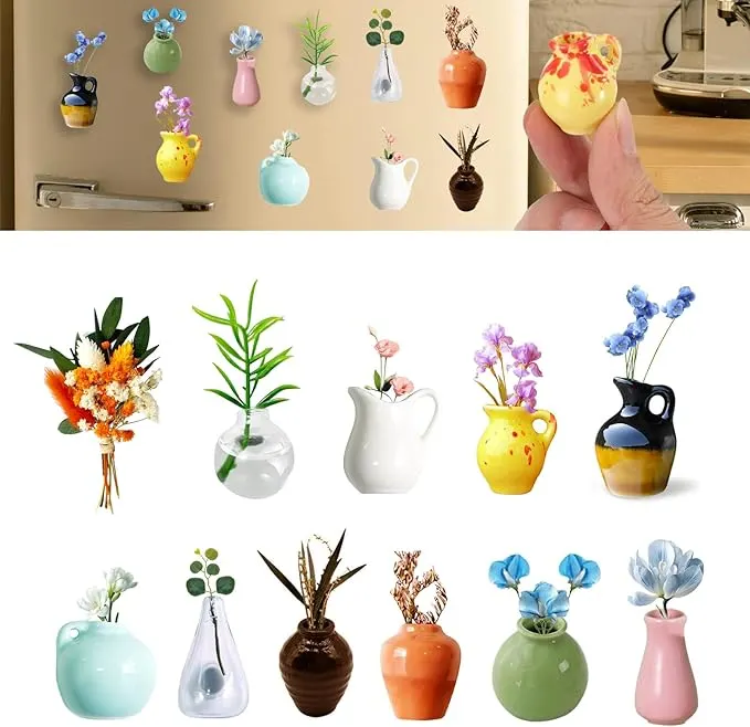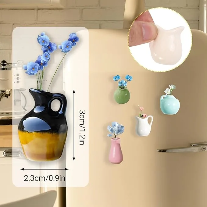 Add a touch of charm and creativity to your living space with this mini decorative ceramic flower vase set. Designed in a compact size with soft colors and unique shapes, these tiny vases instantly enhance the look of refrigerators, metal cabinets, walls, or any magnetic surface. Their playful yet elegant appearance makes them perfect for modern homes, kitchens, offices, or creative corners.