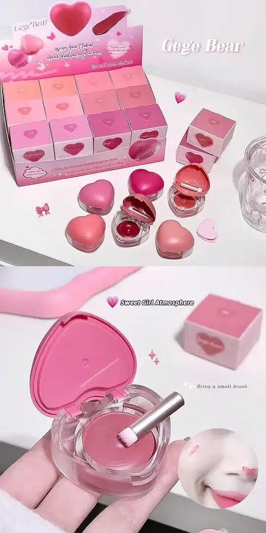 The Heart-Shaped Cream Blush with Soft Glow Finish is a charming and versatile makeup product designed to give your cheeks a fresh, natural-looking radiance. With its adorable heart-shaped design, this blush not only enhances your beauty routine but also adds a cute and stylish touch to your makeup collection. Perfect for everyday wear, parties, or special occasions, this cream blush helps create a soft, healthy glow that brightens your complexion instantly.