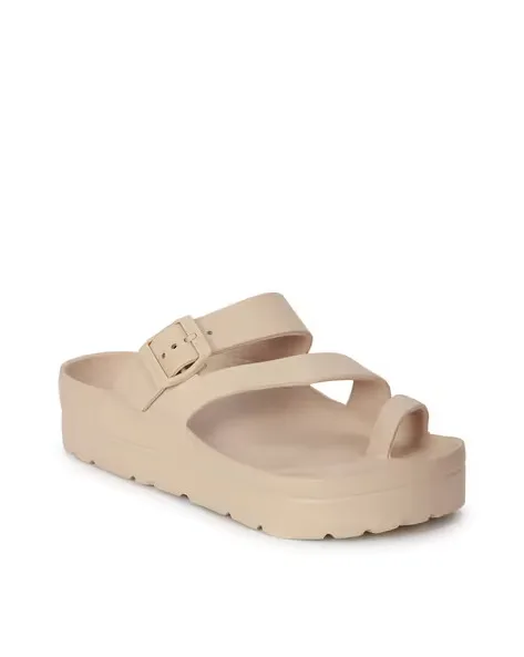 A lightweight platform sole adds subtle height while maintaining balance and flexibility. The textured outsole helps improve grip on different surfaces, offering extra confidence with every step. Despite the elevated sole, the sandals remain easy to walk in thanks to their stable and well-balanced design.