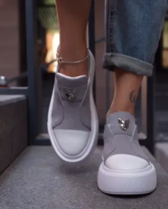 Enhance your everyday wardrobe with these stylish grey slip-on platform sneakers designed to deliver both comfort and modern appeal. The soft grey tone creates a clean and versatile look that pairs effortlessly with a wide variety of outfits. Whether you are heading out for a casual day, running errands, or meeting friends, these sneakers offer a balanced blend of practicality and contemporary fashion.